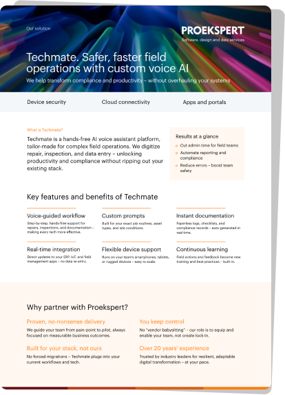 Proekspert delivers practical AI copilots for manufacturers and product companies – built with engineering depth and proven results, not just chatbot hype.